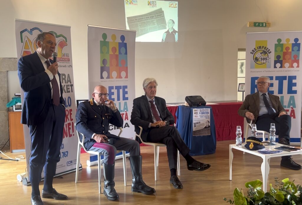 La manifestazione, organizzata dal Coordinamento Regionale Sicilia di “Sos Impresa – Rete per la Legalità” ha visto la preziosa partecipazione del Dott. Nicola Spampinato, Primo Dirigente della Polizia e Dirigente del Compartimento di Polizia Stradale per la Sicilia Orientale. In apertura i saluti di Giuseppe Foti, coordinatore regionale di “Rete per la Legalità”, che ha tracciato alcuni momenti salienti della storia del movimento antiracket sul territorio locale, e del Sindaco di Sant’Agata di Militello Bruno Mancuso, tra i soci fondatori dell’Acis, tra le prime storiche associazioni antiracket, che ha portato una toccante testimonianza personale del periodo buio degli attentati estorsivi sui Nebrodi.